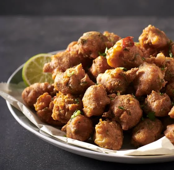 These popular fritters are easy to make by frying a batter consisting of simple ingredients, and are frequently sold as street food. They are typically served hot with chutney or hot sauce.