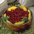 Champagne Mangos with Raspberry Coulis and Cardamom Shortbread
