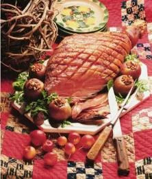 This type of ham can be a butt or shank portion or it could be a whole or half leg that has the hip, thigh and/or shank bone remaining as part of the ham. Bone-in hams are more attractive and flavorful. A bone in ham may be produced as a smoked or unsmoked ham. This type of ham can be pre-sliced as a spiral cut ham or one that is not pre-sliced. It is served as a main dish or as a ham to be sliced for sandwich meats.