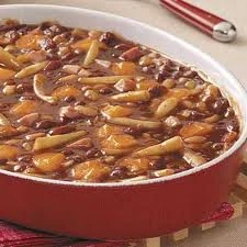 A multi-bean, beef and bacon dish that is good anytime of the year.
