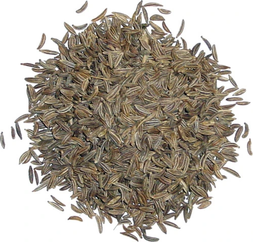 Caraway are the small, crescent-shaped dried seeds from an herb. They are used whole or ground to add a subtle anise flavoring to baked goods and savory dishes.