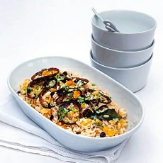 Carnaroli rice, an Italian variety, has short, plump grains that, like those of Arborio rice, are high in starch content and, when cooked, have a creamy, sauce like consistency. Frequently used in risotto dishes, it is available in Italian delicatessens and well-stocked food stores.