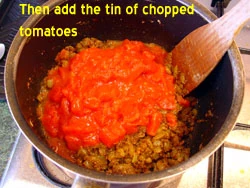 Then add the tin of chopped tomatoes - and fry for some more time - until you start to see the oil separating from the mixture.