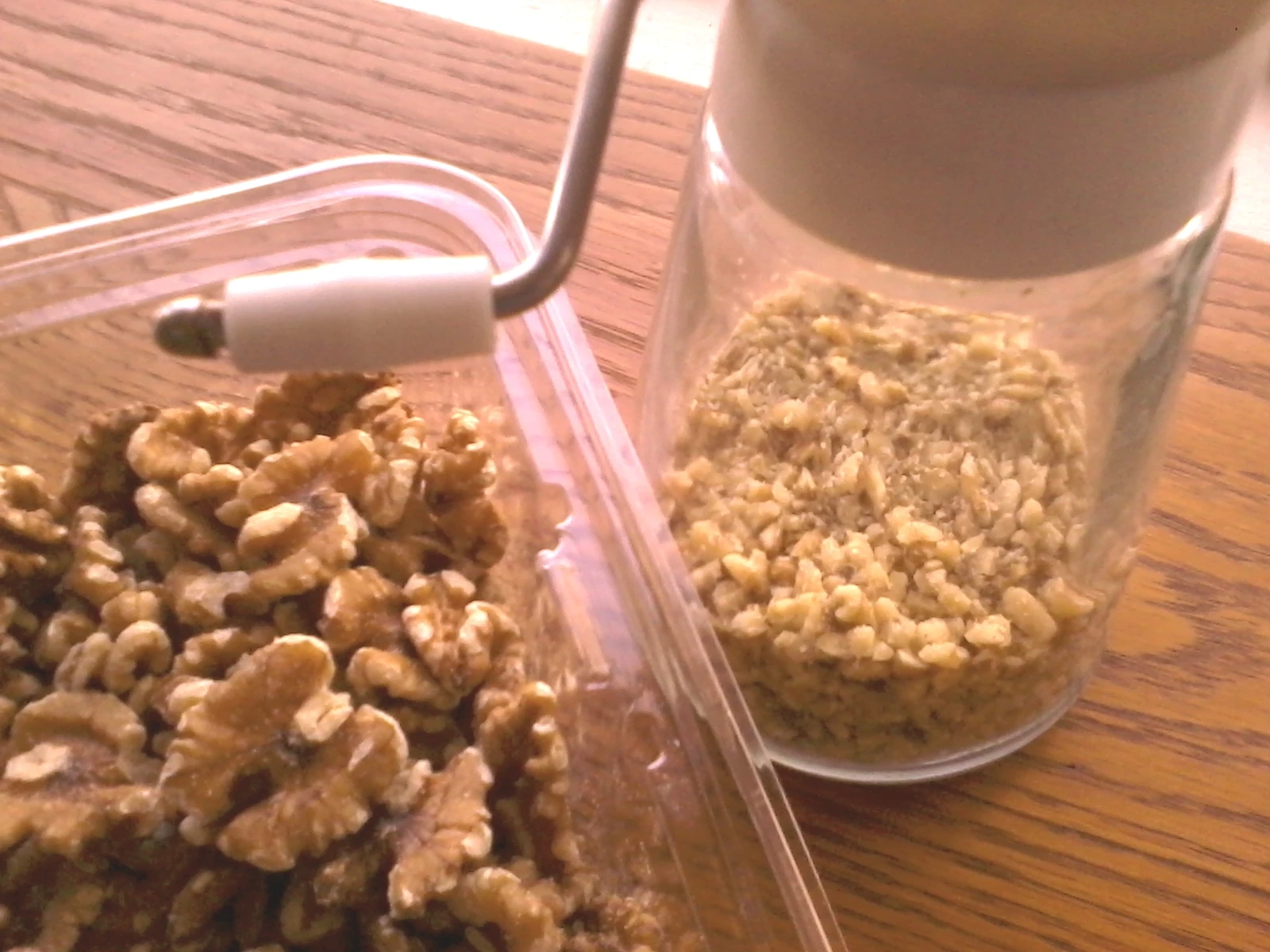 English walnuts can be ground with a simple grinder to use as a topping with honey and melted margarine.